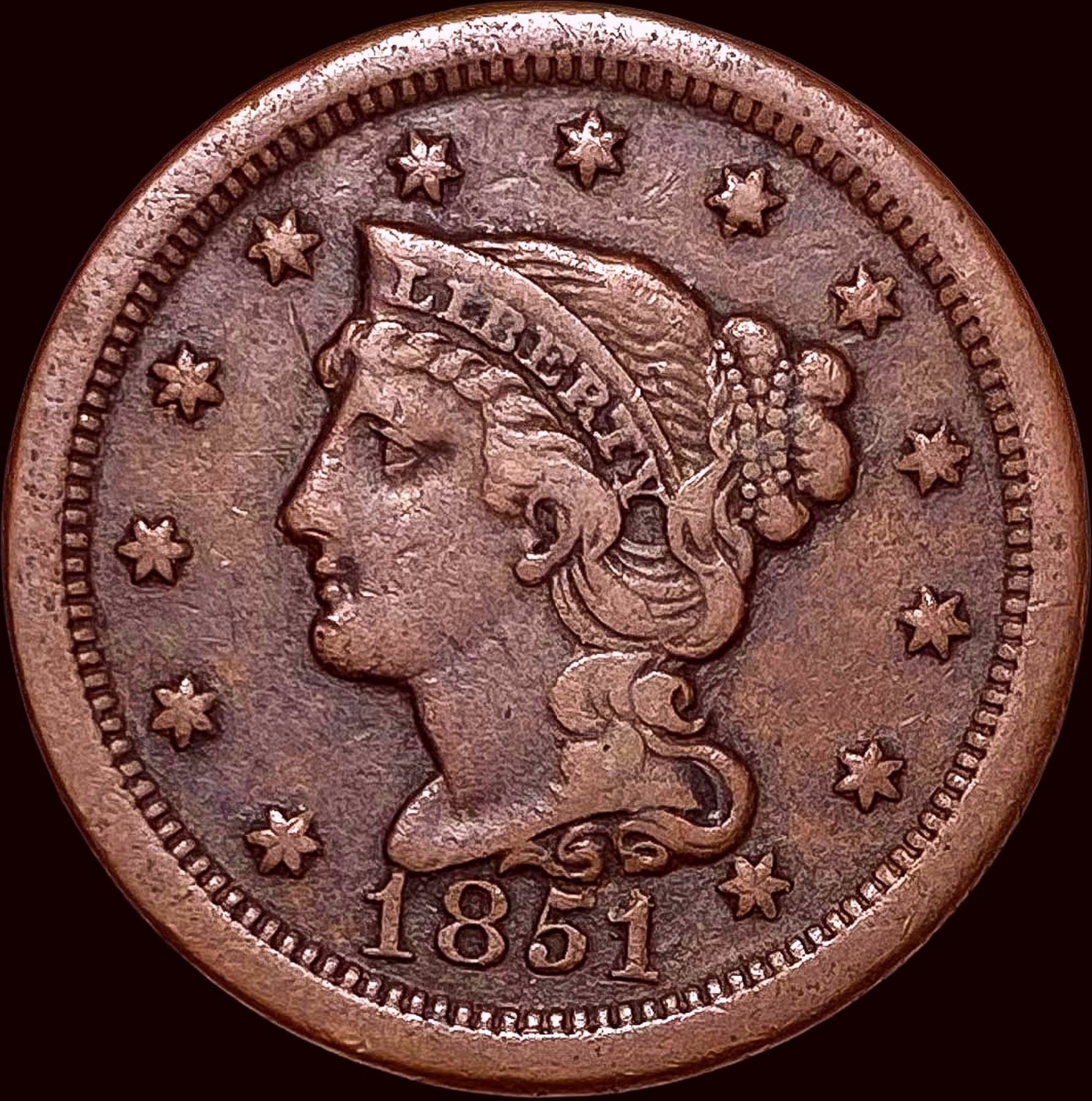1851 Braided Hair Large Cent CLOSELY UNCIRCULATED