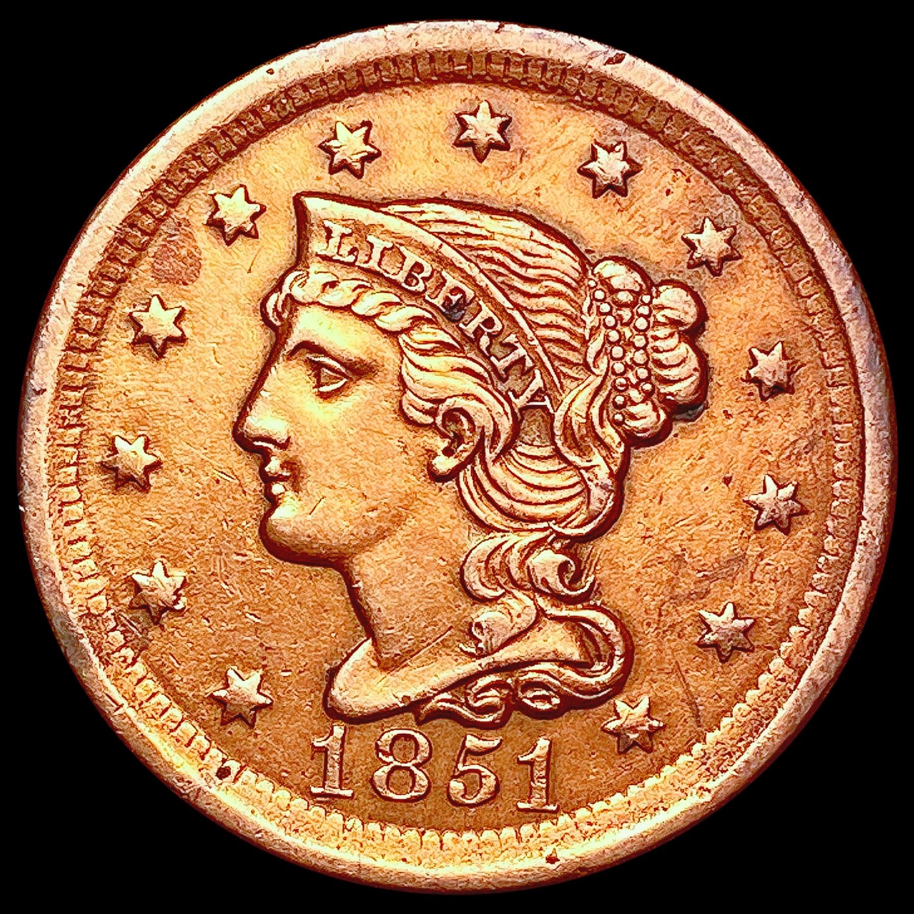 1851 Braided Hair Large Cent HIGH GRADE