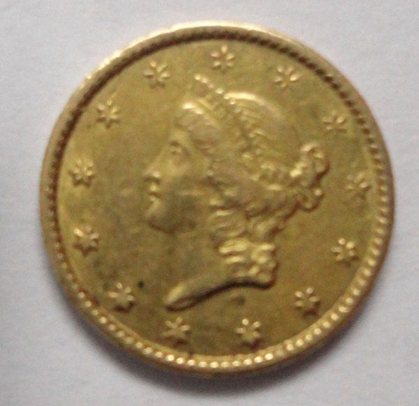 1851-C $1 GOLD RARE C MINT AU50 ORIG. PATINA, STILL HAS LUSTER