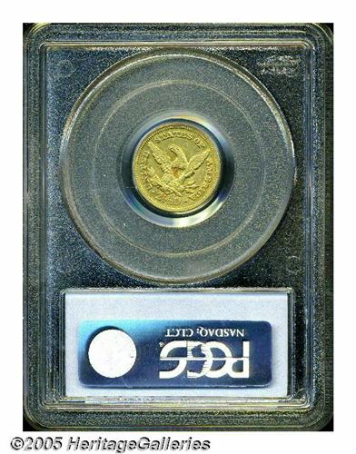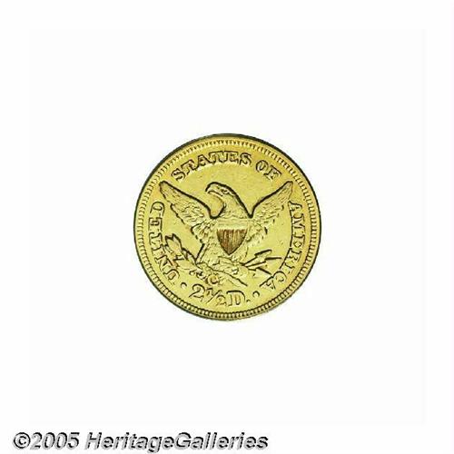 <B>1851-C<$2 1/2> AU50 PCGS.</B></I> Variety 13-G. A scarce southern branch mint issue, a scant 14,923 pieces were struck. Minor marks on Liberty's jaw and above the first star are hardly worthy of mention. The strike is, as expected, not full on the eagle's shield and plumage or on the hair curls, but the impression from the dies is suitable for a Charlotte Mint product. Population: 12 in 50, 18 finer (6/05).