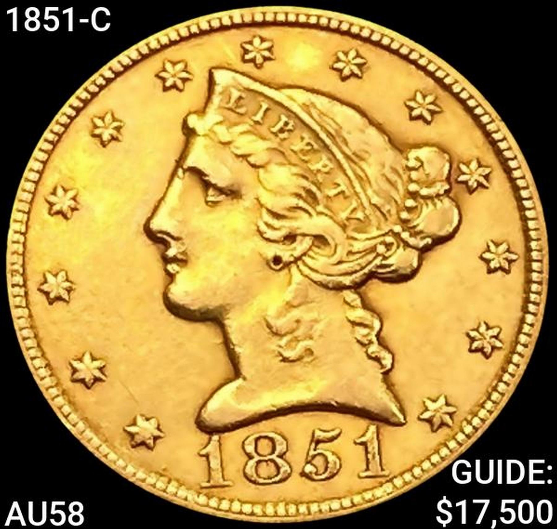 1851-C $5 Gold Half Eagle CHOICE AU