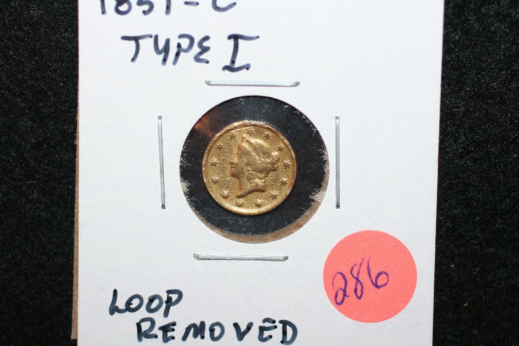 1851-C Liberty $1 Gold Coin, Type I, Loop Removed