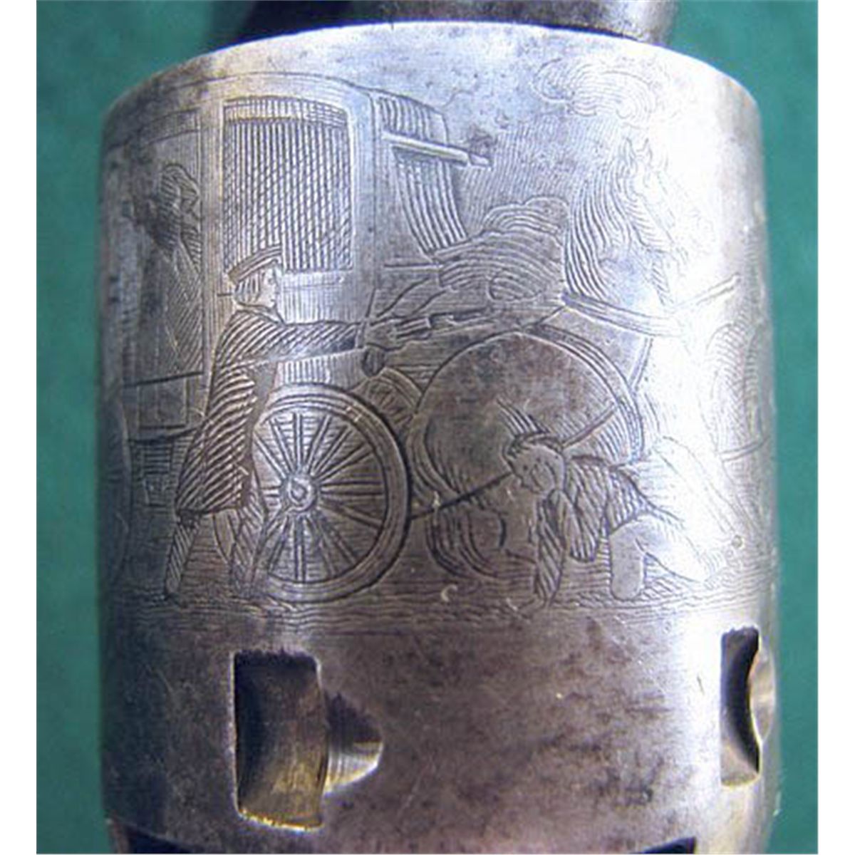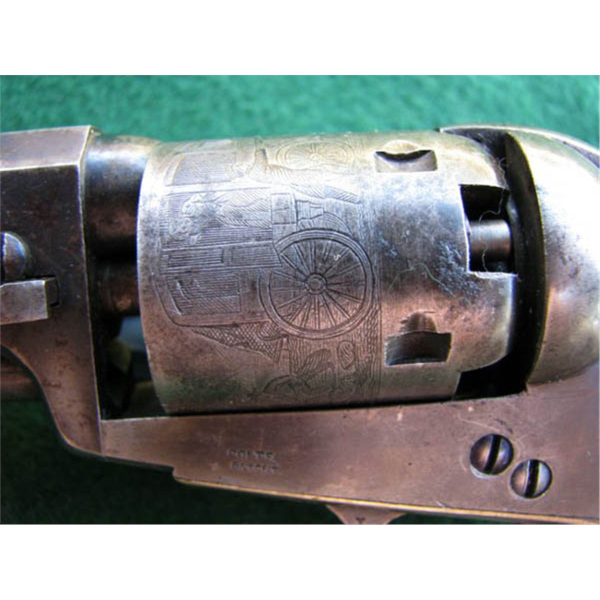 This Colt Model 1849 Cap & Ball Revolver is completely untouched and original, as such, is much sought after by investors and collectors. This Colt was made Circa: 1851, SN: 18325, at the height of the California Gold Rush during the early 1850's. It has a (6'') barrel and is .31 Calibre. The serious collector/investor will appreciate the vivid sharp cylinder engraving showing the famous stagecoach holdup scene. All matching numbers throughout, excellent bore, 100% original finish (varnish) still remains on the grips. The finish still retains 85+% original blue with slight traces of the original case colors on the frame. Overall screw heads are in good condition. A good amount of the original silver still in evidence on the back strap and trigger guard. Most of the ''safety pins'' are still in evidence on the cylinder, which shows minimal usage and no real abuse. The action and lockup are as it was in 1851. Because of this Colt Pistol's diminutive size and weight it was very popular with both the Union and Confederate soldiers during the Civil War. Also, records show many of the gold prospectors chose this pistol. This beautiful, well cared for antique revolver has been in a California Estate for well over 75 + years. A pre- Civil War 1849 ''Pocket Model'' Colt that will be a fine and wise investment for one who appreciates American History. This item has to be paid by wire transfer, no credit card. Buyers Pay Actual Shipping and Handling Charges(see terms and conditions for more information).