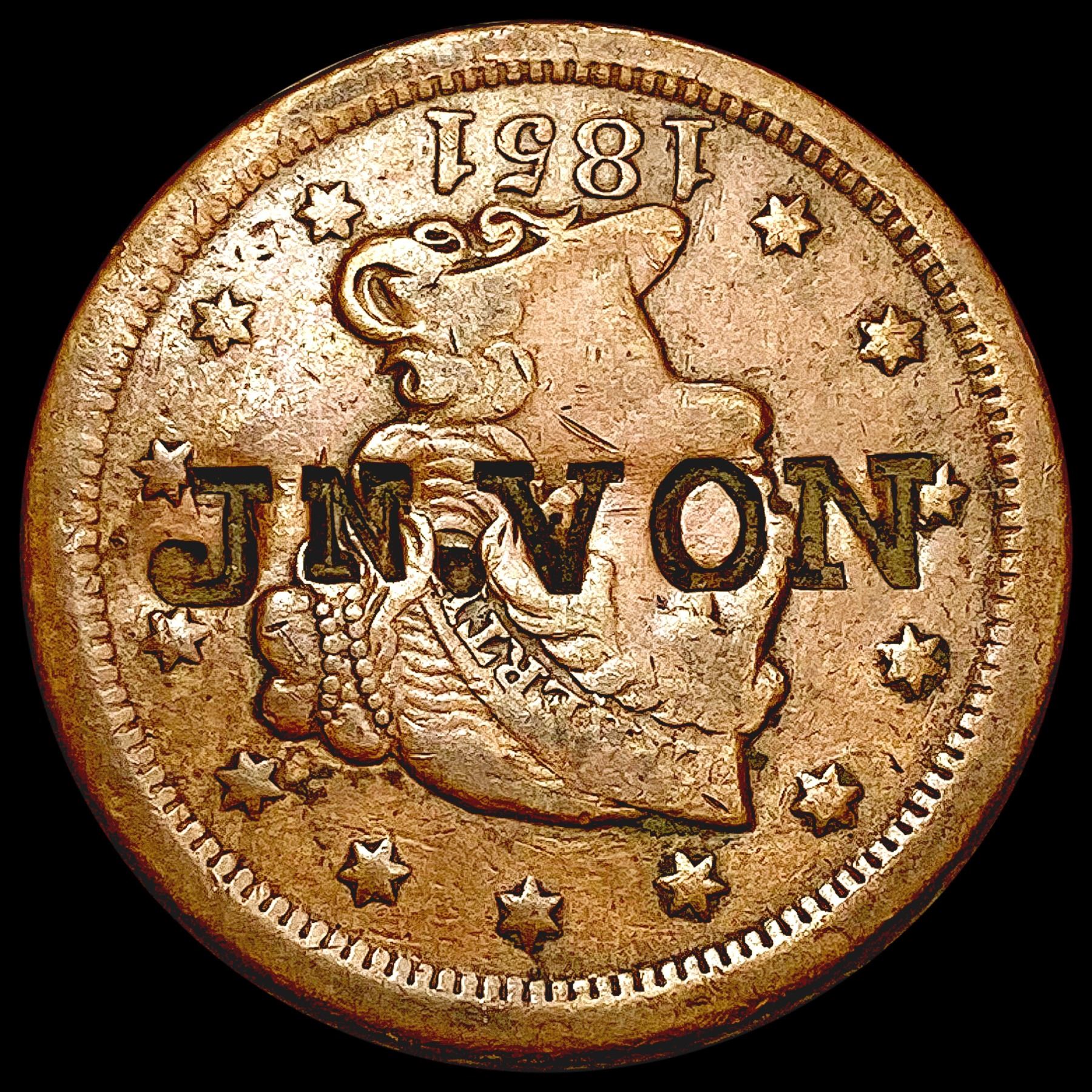 1851 Counterstamped Large Cent JN. VON HIGH GRADE