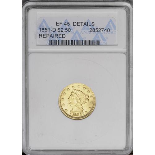 1851-D $2 1/2 --Repaired--ANACS. XF45 Details. Variety 1851-D[$2 1/2]--Repaired--ANACS. XF45 Details