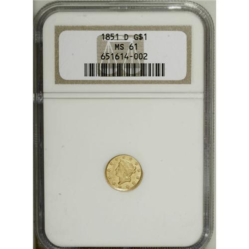 1851-D G$1 MS61 NGC. Variety 3-D. With only 9,882 piec