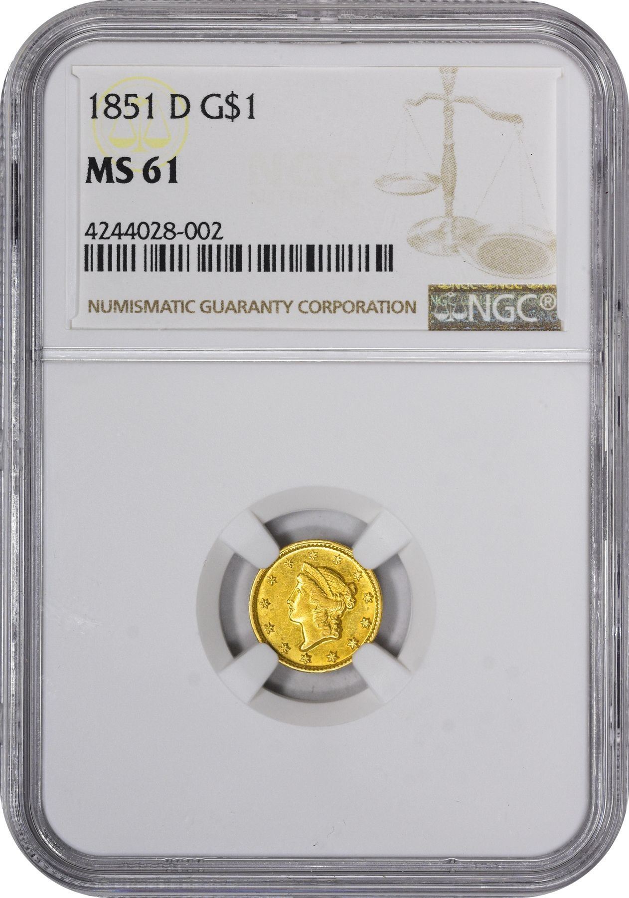 Title: 1851-D Gold $1. Winter 3-D. MS-61 NGC..