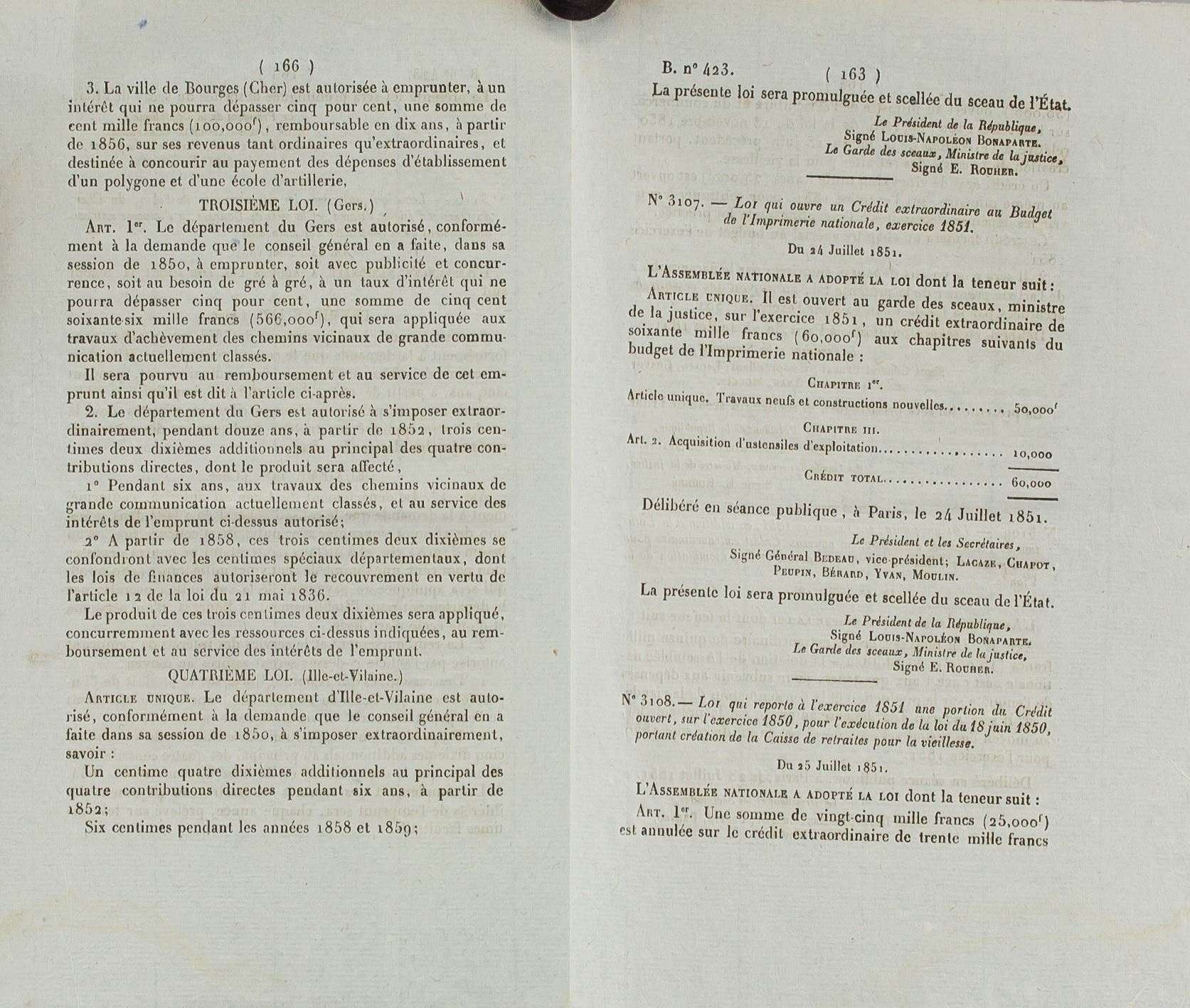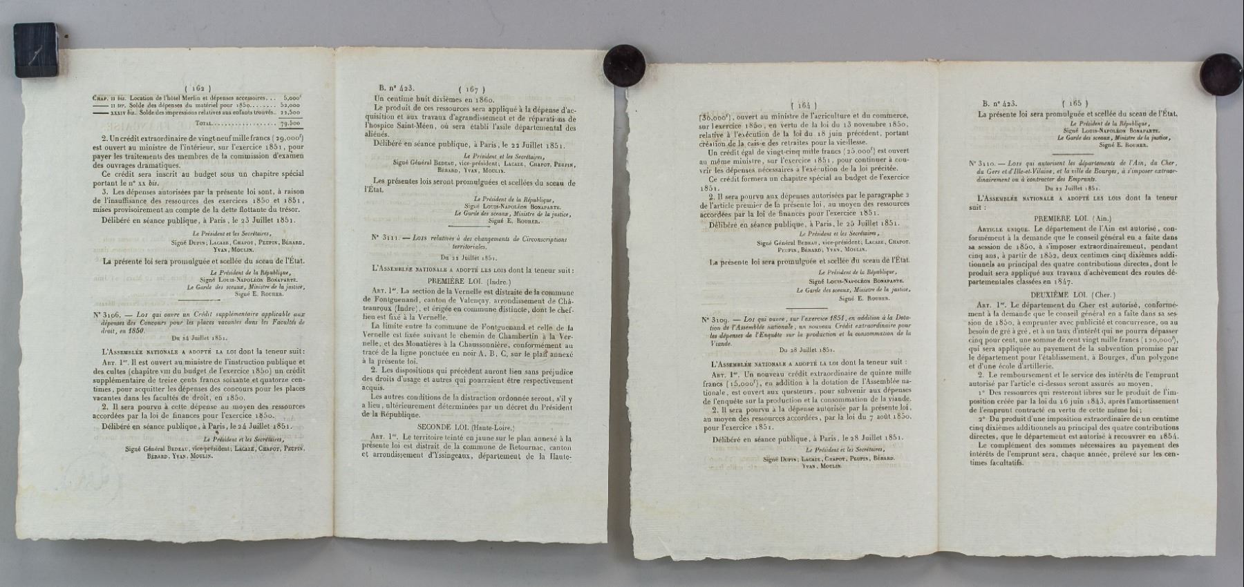 1851 French Revolution manuscript, signed in print form, Louis Napoleon Bonaparte, President of the Second Republic, with written seal. A Bulletin Des Lois #423. Very fine condition, 22.4 x 14.2 cm. PROVENANCE: Private collection (Alberta, ON)