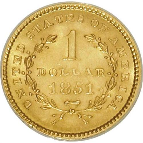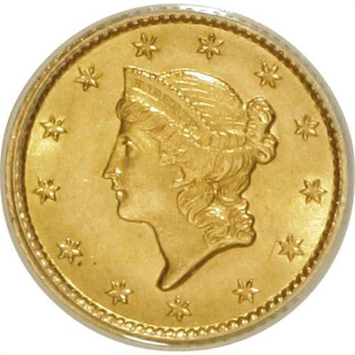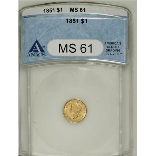 1851 G$1 MS61 ANACS. NGC Census: (621/1898). PCGS Popu