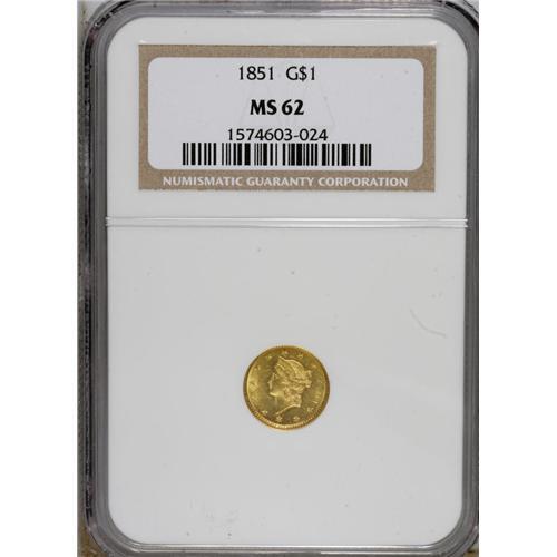 1851 G$1 MS62 NGC. NGC Census: (2014/1794). PCGS P