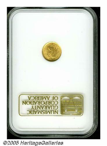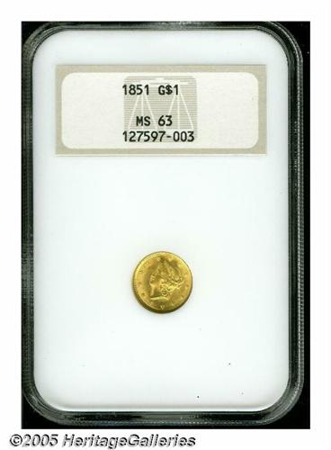 <B>1851<G$1> MS63 NGC.</B></I> Well struck and fully lustrous, with bright, matte-like, yellow-gold surfaces that exhibit pleasing mint frost and have been carefully preserved from harm. The dies are rotated counterclockwise by approximately thirty degrees.