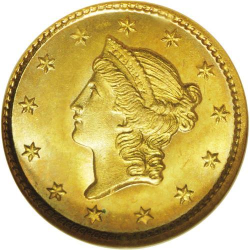 <B>1851<G$1> MS67 NGC.</B></I> For the first time since the inception of the denomination in 1849, gold dollar production at the Philadelphia Mint topped 1 million coins in 1851. A staggering total of 3.3 millions coins were produced, and, as one might surmise from this mintage figure, the 1851-P is a popular and readily obtainable coin for type purposes. Of course, at the MS67 level, this issue is a significant condition rarity. A simply breathtaking Superb Gem, the surfaces are overlaid in coruscating mint frost that exhibits a subtle steel-gray and orange-gold color. We have no doubt about this coin's originality, and the razor sharp striking definition enhances the already memorable eye appeal. Census: 3 in 67, 4 finer (4/06).