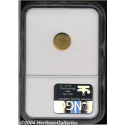 <B>1851<G$1> MS68 NGC.</B></I> In our 2002 February Long Beach Sale we sold another MS68 example of this date (yes, not only is there another but the <I>Census Report</B></I> indicates a third has also been certified). That particular coin was noted as having "a tiny 'pimple' (an as struck feature) on Liberty's cheek." It was thought that this raised dot of metal might prove useful in tracing that coin's pedigree in the future. This is definitely a different coin from the one we offered two years ago, but what is interesting is this coin shows the same pimple-like dot on Liberty's cheek. This indicates to us that there may have been a small number of coins from this die set aside in the year of issue and preserved in optimal conditions--we know at least two were. The centers are just a bit softly struck on each side but the peripheral details are exceptionally strong with no hint of weakness. The thick, frosted mint luster has taken on a rich overlay of reddish patina and the surfaces are almost perfectly preserved. <BR><BR><B>Important notice:</B> Heritage usually auctions material at the rate of 200-250 lots per hour. On some occasions eBay Live bid software or the Internet may not be able to keep up with the pace of the auction. We recommend placing a realistic absentee bid now as insurance to avoid disappointment. Occasionally the auctioneer may eliminate or reject an eBay Live bid, and the auctioneer may also reopen a lot after the close of the eBay live bidding (usually because we missed an audience bid), and may reject your bid even if it shows you as the winning bidder. By bidding via eBay Live, you agree that Heritage may award the lot to another bidder at its sole discretion under the circumstances described above or any other reasonable circumstances. Since eBay bids are not shown to us until we open the lot on the floor, we treat those bids just like floor bids. In most cases the floor responds before the eBay bid is presented to us, due to Internet lag time, so for consistency we have made it a policy that floor bids are always considered first over tie eBay live bids. Also please note that all Heritage lots purchased through eBay Live carry a 20% Buyer's Premium. Please make sure you read the Terms and Conditions before you bid.