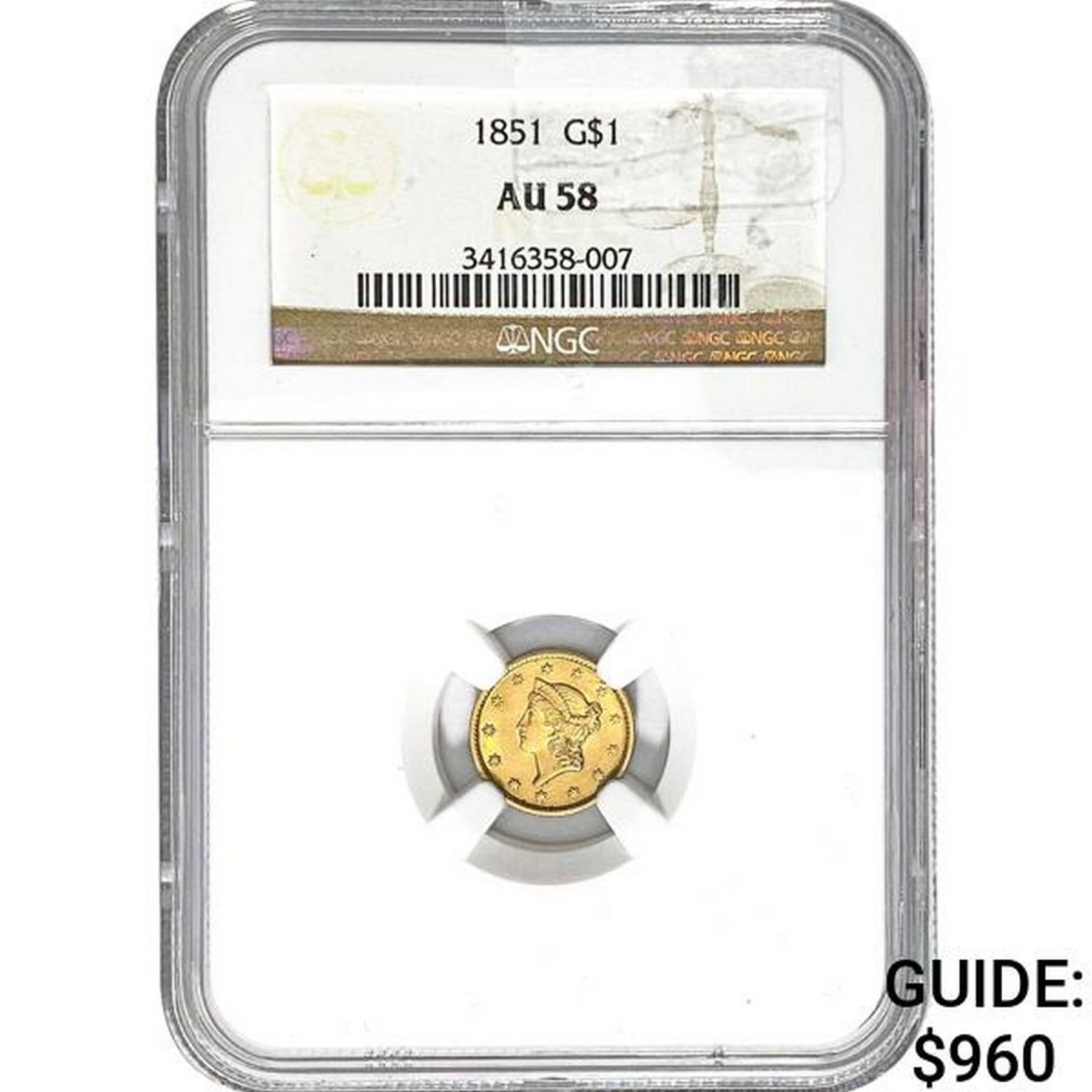 1851 G$1 NGC AU58
