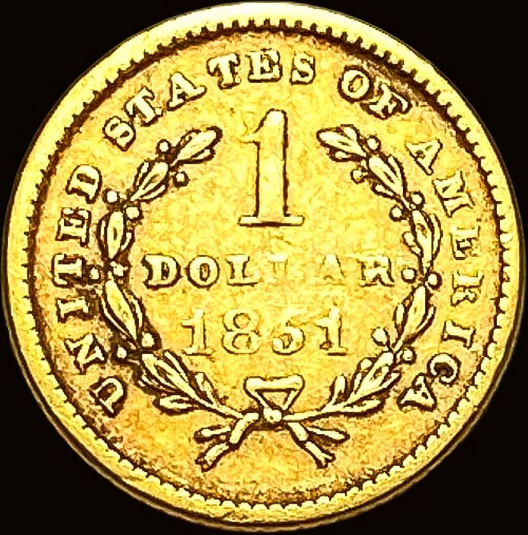 1851 Gold $1 Type 1 Liberty LIGHTLY CIRCULATED