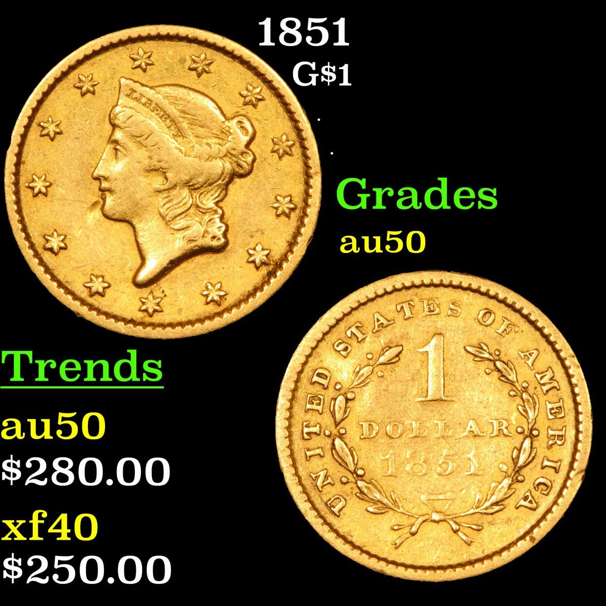 1851 Gold Dollar $1 Grades AU, Almost Unc.