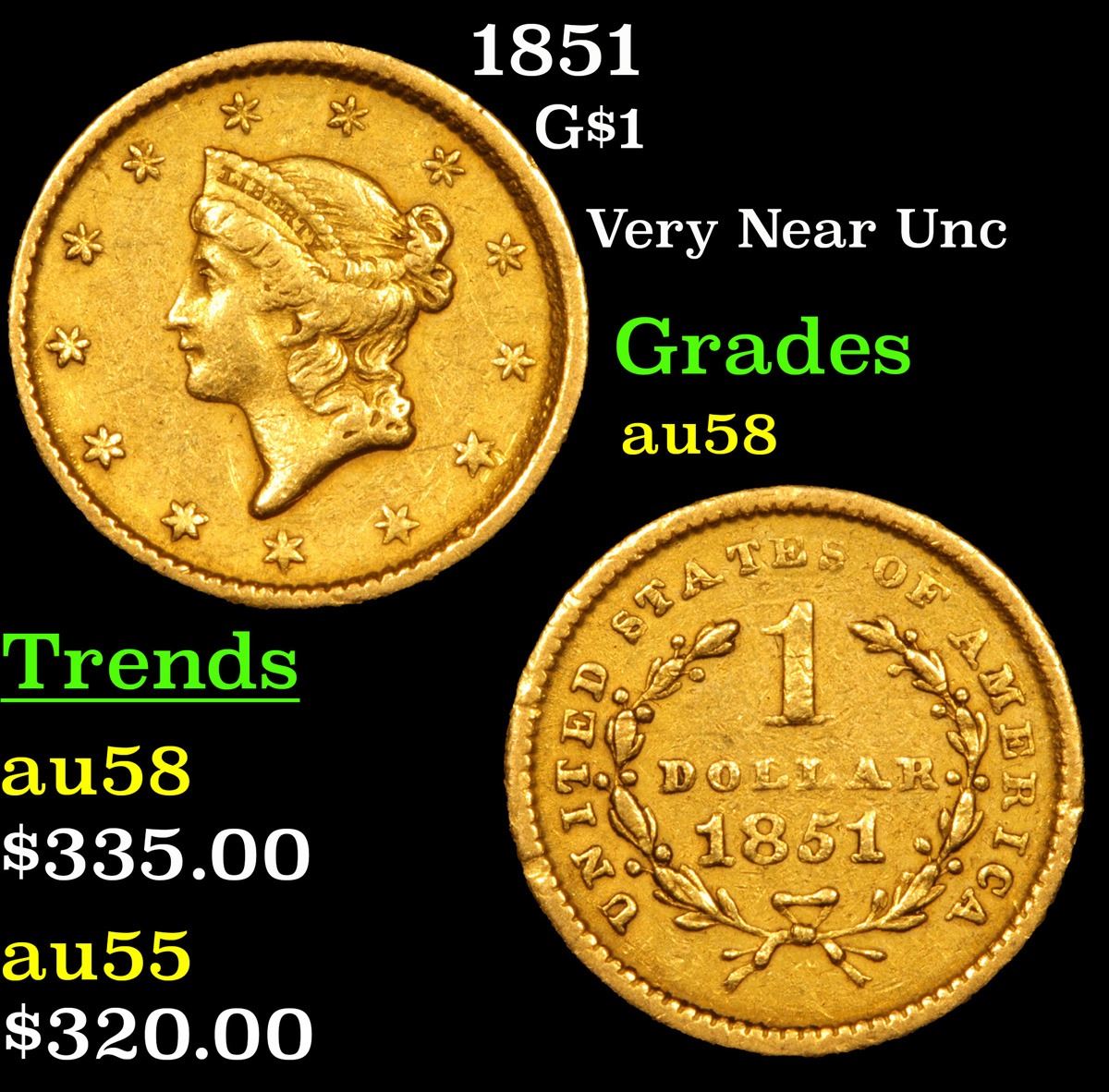 1851 Gold Dollar $1 Grades Choice AU/BU Slider.