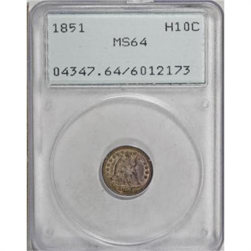 <B>1851 H10C MS64 PCGS.</B></I> PCGS Population (25/29). NGC Census: (30/42). Mintage: 781,000. Numismedia Wsl. Price for NGC/PCGS coin in MS64: $525. (#4347)<BR><BR><B>Coin Engraver:</B> Christian Gobrecht<BR><BR><b>Shipping:</b> Coins & Currency (<a target="_blank" href="http://www.heritageauctions.com/common/shipping.php">view shipping information</a>)