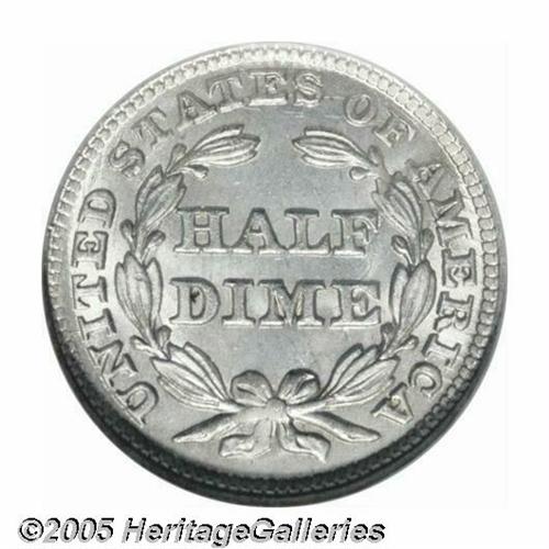 <B>1851<H10C> MS67 NGC.</B></I> Well struck throughout, both sides exhibit a bright, untoned appearance. A conditionally rare, Superb Gem example of a Stars Obverse half dime. Essentially pristine, with typical mild die clashing evident on the reverse. Population: 3 in 67, 0 finer at either service (3/05).