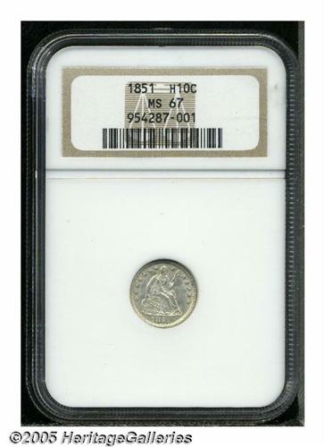 1851 H10C MS67 NGC. Well struck throughout, both