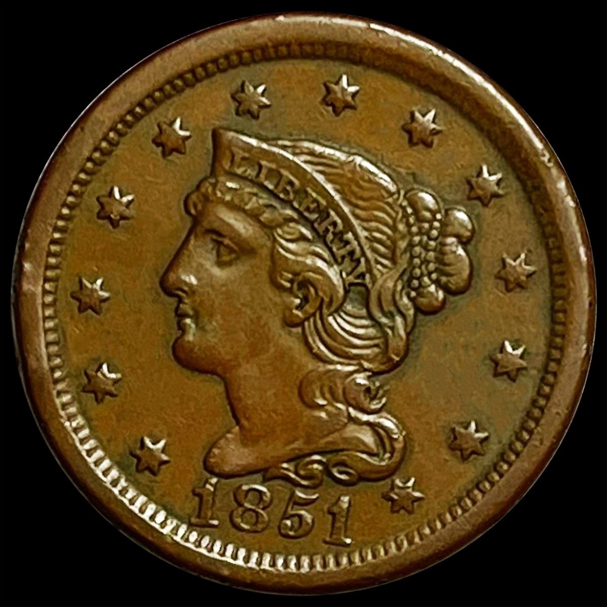 1851 Large Cent NEARLY UNCIRCULATED