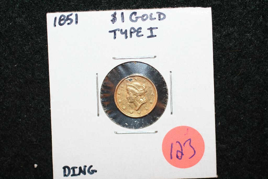1851 Liberty $1 Gold Coin, Type I, Ding
