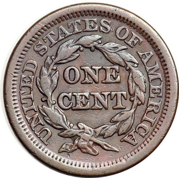 1851 N-43 R5 F12. Slightly sharper but lightly cleaned and retoned glossy light and medium chocolate brown. Only minor nicks of no significance. E-MDS, die state a late.