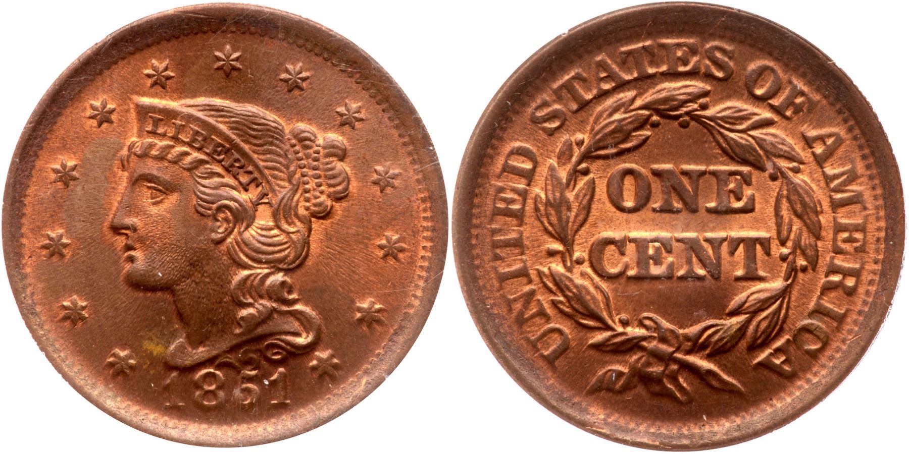 Original mint red mellowed to light steel with a splash of gold at the bust tip. A couple small pinscratches above T & S of STATES the only marks worth noting. Brilliant coruscating luster. CAC green sticker. Among the finest known for the variety.