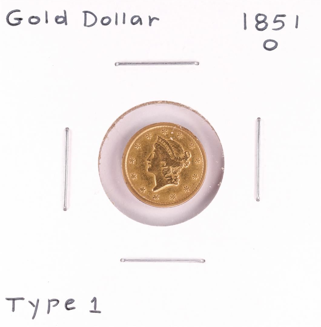 One 1851-O $1 Type 1 Liberty Head Gold Coin.