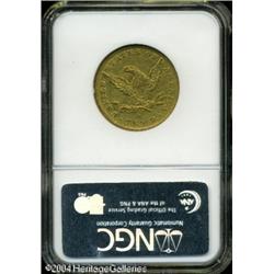 1851-O $10 AU55 NGC. Crisply struck except for the <B>1851-O $10 AU55 NGC.</B></I> Crisply struck except for the stars, this olive-gold New Orleans Ten exhibits considerable luminous luster. Relevant marks are limited to a pinscratch in the field near the chin and a bruise on the obverse rim near 11 o'clock. A mint-made ring rests atop the second vertical shield stripe, which is diagnostic for the issue. <BR><BR><B>Important notice:</B> Heritage usually auctions material at the rate of 200-250 lots per hour. On some occasions eBay Live bid software or the Internet may not be able to keep up with the pace of the auction. We recommend placing a realistic absentee bid now as insurance to avoid disappointment. Occasionally the auctioneer may eliminate or reject an eBay Live bid, and the auctioneer may also reopen a lot after the close of the eBay live bidding (usually because we missed an audience bid), and may reject your bid even if it shows you as the winning bidder. By bidding via eBay Live, you agree that Heritage may award the lot to another bidder at its sole discretion under the circumstances described above or any other reasonable circumstances. Since eBay bids are not shown to us until we open the lot on the floor, we treat those bids just like floor bids. In most cases the floor responds before the eBay bid is presented to us, due to Internet lag time, so for consistency we have made it a policy that floor bids are always considered first over tie eBay live bids. Also please note that all Heritage lots purchased through eBay Live carry a 20% Buyer's Premium. Please make sure you read the Terms and Conditions before you bid. This lot is being auctioned in conjunction with a live floor auction by Heritage Galleries & Auctioneers. All final auction and invoice information will be supplied by Heritage Galleries & Auctioneers, and all other information should be considered preliminary. Lot:6735