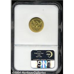 <B>1851-O<$2 1/2> AU58 NGC.</B></I> Doubled Date, Breen-6214. The date was first punched slanting down to the right, then corrected to its proper level state. A bright, typically struck example with just the slightest rub.<BR><I>Ex: California State N.A., John Cobb Sale (11/66), lot 33, where it brought $49.50.</B></I> <BR><BR><B>Important notice:</B> Heritage usually auctions material at the rate of 200-250 lots per hour. On some occasions eBay Live bid software or the Internet may not be able to keep up with the pace of the auction. We recommend placing a realistic absentee bid now as insurance to avoid disappointment. Occasionally the auctioneer may eliminate or reject an eBay Live bid, and the auctioneer may also reopen a lot after the close of the eBay live bidding (usually because we missed an audience bid), and may reject your bid even if it shows you as the winning bidder. By bidding via eBay Live, you agree that Heritage may award the lot to another bidder at its sole discretion under the circumstances described above or any other reasonable circumstances. Since eBay bids are not shown to us until we open the lot on the floor, we treat those bids just like floor bids. In most cases the floor responds before the eBay bid is presented to us, due to Internet lag time, so for consistency we have made it a policy that floor bids are always considered first over tie eBay live bids. Also please note that all Heritage lots purchased through eBay Live carry a 20% Buyer's Premium. Please make sure you read the Terms and Conditions before you bid.