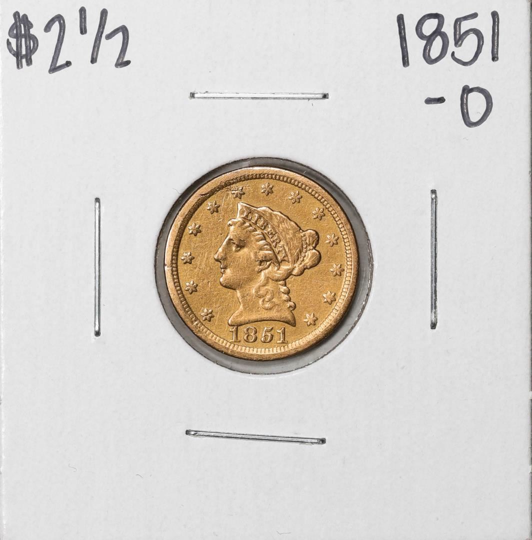 One 1851-O $2 1/2 Liberty Head Quarter Eagle Gold Coin.