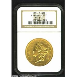 1851-O $20 MS61 NGC. Like the 1850-O and 1852-O, the second-year 1851-O is a common date among New O
