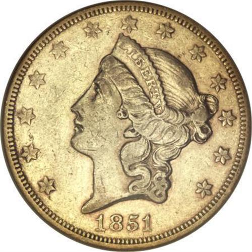 <B>1851-O $20 XF45 NGC.</B></I> The yellow-orange surfaces of this lightly circulated O-mint double eagle retain a surprising amount of flash. The strike is slightly above-average for the issue, with solid definition on a handful of obverse stars but softness on the rest. Numerous wispy marks and a handful of more significant abrasions appear on Liberty's cheek and in the fields. Of the 315,000 piece struck for this early double eagle issue, only a small fraction survive today.<BR><BR><B>Coin Engraver:</B> James B. Longacre<BR><BR><b>Shipping:</b> Coins & Currency (<a target="_blank" href="http://www.heritageauctions.com/common/shipping.php">view shipping information</a>)