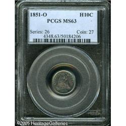 <B>1851-O H10C MS63 PCGS.</B></I> Beautiful cobalt-blue and mauve patina visits lustrous surfaces. The design elements are adequately struck, though the stars along the left border are a trifle soft in the centers. Fewer marks than might be expected for the grade level. Lot:6127