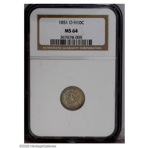 1851-O H10C MS64 NGC. Lustrous surfaces are bathed in 1851-O[H10C] MS64 NGC.