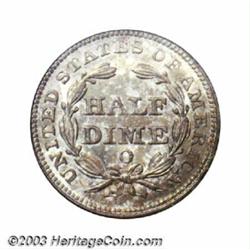 <TR><TD width="100%"><TABLE cellSpacing=1 cellPadding=3 width="100%" border=0><TBODY><TR><TD width="100%" bgColor=#79735c><FONT face=arial color=#ffffff size=3><B>Description</B> </FONT></TD></TR><TR><TD width="100%" bgColor=#ffffff><FONT face=arial size=2><B>1851-O H10C MS66 PCGS.</B></I> V-1. With 860,000 pieces struck, this is one of the more available New Orleans half dimes in mint condition. However, in MS66 it is very elusive, as one might imagine. This piece has bright, satiny mint luster and each side is covered with rich sea-green and rose-gray toning. Just a bit softly struck over the highpoints of the design, as one would expect from a New Orleans product, with no obvious marks or surface defects on either side. </FONT></TD></TR></TBODY></TABLE></TD></TR></TBODY></TABLE><BR><A name=PricesRealized></A><TABLE cellSpacing=0 cellPadding=0 width="100%" bgColor=#000000 border=0><TBODY><TR><TD width="100%"><TABLE cellSpacing=1 cellPadding=3 width="100%" border=0><TBODY><TR><TD width="100%" bgColor=#79735c><A name=PR><FONT face=arial color=#ffffff size=3><B>Previous Prices from Heritage Auctions</B> </FONT></A></TD></TR><TR><TD bgColor=#f6f6ed><TABLE cellSpacing=0 cellPadding=0 width="100%" border=1><TBODY><TR><TD align=middle width="33%"><B>Date</B></TD><TD align=middle width="33%"><B>Service</B></TD><TD align=middle width="33%"><B>Price</B></TD></TR><TR bgColor=whitesmoke><TD width="33%"><B>05/01/1999</B></TD><TD width="33%">NGC</TD><TD width="33%">$3,680.00</TD></TR></TBODY></TABLE></TD></TR><TR><TD bgColor=#ffffff><FONT face=arial size=1 ?>PLEASE NOTE: All prices realized reflect the final hammer price PLUS the buyer's premium in auctions that charge a buyer's premium. Each item has a notation at the top of the listing indicating whether that lot included a buyer's premium. Example: A item that sells with a final hammer price of $100 and a 20% buyer's premium will display with a price realized of $120. All information listed is intended to be as accurate as possible, but errors are possible. Please use this guide carefully and inform us of any inaccuracies. </FONT></TD></TR></TBODY></TABLE></TD></TR></TBODY></TABLE><BR><TABLE cellSpacing=0 cellPadding=0 width="100%" bgColor=#000000 border=0><TBODY><TR><TD width="100%"><TABLE cellSpacing=1 cellPadding=3 width="100%" border=0><TBODY><TR><TD width="100%" bgColor=#79735c colSpan=6><FONT face=arial color=#ffffff size=3><B>Price Guide*</B> </FONT></TD></TR><TR bgColor=#f6f6ed><TD align=middle><B>Grade</B> </TD><TD align=middle><B>Coin World<BR>(Trends)</B> </TD><TD align=middle><B>Numismedia<BR>Retail</B> </TD><TD align=middle><B>Numismedia<BR>Wholesale</B> </TD><TD align=middle><B>Coin<BR>Universe</B> </TD><TD align=middle><B>Heritage<BR>Value Index</B> </TD></TR><TR bgColor=#ffffff><TD align=middle>65</TD><TD align=right>$3,950.00</TD><TD align=right>---</TD><TD align=right>$2,850.00</TD><TD align=right>---</TD><TD align=right>$2,812.50</TD></TR><TR style="FONT-WEIGHT: bold" bgColor=#cccfdd><TD align=middle>66</TD><TD align=right>---</TD><TD align=right>---</TD><TD align=right>$3,680.00</TD><TD align=right>---</TD><TD align=right>---</TD></TR><TR bgColor=#ffffff><TD align=middle>67</TD><TD align=right>---</TD><TD align=right>---</TD><TD align=right>---</TD><TD align=right>---</TD><TD align=right>---</TD></TR><TR bgColor=#ffffff><TD colSpan=6><FONT size=1>*All information listed is intended to be as accurate as possible, but errors are possible. No item may be returned or refused based on this information which is provided as a service to our customers. You should contact each pricing source directly to determine the accuracy of this information. </FONT></TD></TR></TBODY></TABLE></TD></TR></TBODY></TABLE><BR><TABLE cellSpacing=0 cellPadding=0 width="100%" bgColor=#000000 border=0><TBODY><TR><TD width="100%"><TABLE cellSpacing=1 cellPadding=3 width="100%" border=0><TBODY><TR><TD width="100%" bgColor=#79735c><FONT face=arial color=#ffffff size=3><B>Population Guide</B> </FONT></TD></TR><TR bgColor=#ffffff><TD align=middle><!-- Begin Output of Population Grid--><TABLE cellSpacing=0 cellPadding=0 width="100%" border=0><TBODY><TR><TD vAlign=center><TABLE cellSpacing=0 width="100%" border=1 cellsadding="3"><TBODY><TR><TD vAlign=center><TABLE cellSpacing=0 cellPadding=3 width="100%" border=1><TBODY><TR><TD vAlign=center align=middle bgColor=#f0f1e8 colSpan=2 <CENTER><FONT face=Arial size=2><B>PCGS Pop </B></FONT><CENTER></CENTER></TD><TD vAlign=center align=middle bgColor=#f0f1e8 colSpan=2><CENTER><FONT face=Arial size=2><B>NGC Pop</B></CENTER></FONT></TD></TR><TR><TD vAlign=center><FONT face=Arial size=2>(66)</FONT> </TD><TD vAlign=center align=right><FONT face=Arial size=2>0</FONT> </TD><TD vAlign=center><FONT face=Arial size=2>(66)</FONT> </TD><TD vAlign=center align=right><FONT face=Arial size=2>5</FONT> </TD></TR><TR><TD vAlign=center><FONT face=Arial size=2>(>66)</FONT> </TD><TD vAlign=center align=right><FONT face=Arial size=2>0</FONT> </TD><TD vAlign=center><FONT face=Arial size=2>(>66)</FONT> </TD><TD vAlign=center align=right><FONT face=Arial size=2>0</FONT> </TD></TR></TBODY></TABLE></TD></TR></TBODY></TABLE></TD></TR></TBODY></TABLE><!-- End Output of Population Grid--></TD></TR></TBODY></TABLE></TD></TR></TBODY></TABLE><BR><TABLE cellSpacing=0 cellPadding=0 width="100%" bgColor=#000000 border=0><TBODY><TR> Important notice: We expect to be auctioning lots at the rate of 200-250 per hour. On occasion eBay live bid software cannot keep up with the pace of the auctions where 4-5 lots per minute can hammer down, so we recommend that you place a realistic absentee bid now as insurance to avoid disappointment. Also please note that all Heritage/CAA lots purchased through eBay Live carry a 20% Buyer's Premium. Please make sure you read the Terms and Conditions.