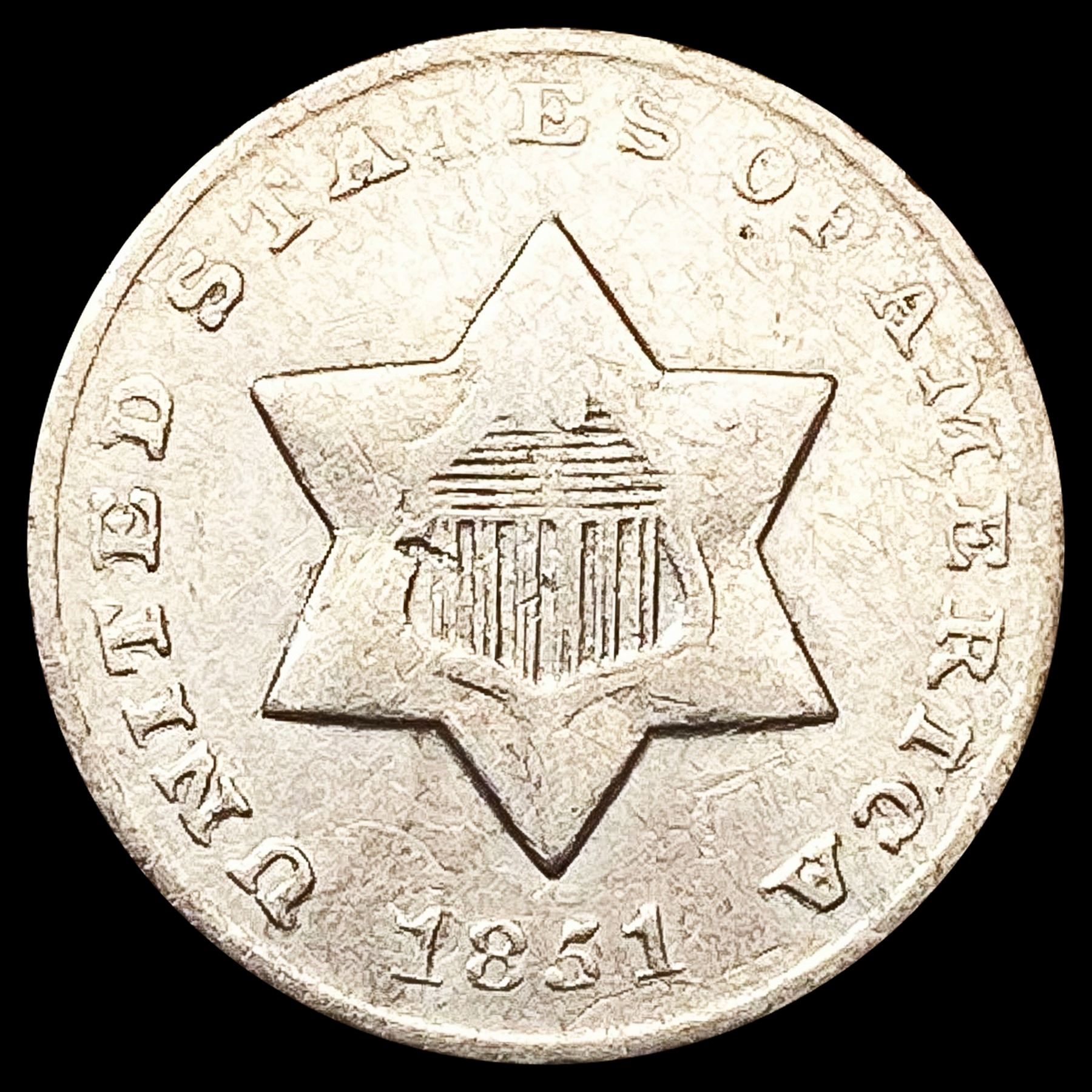1851-O Silver Three Cent ABOUT UNCIRCULATED