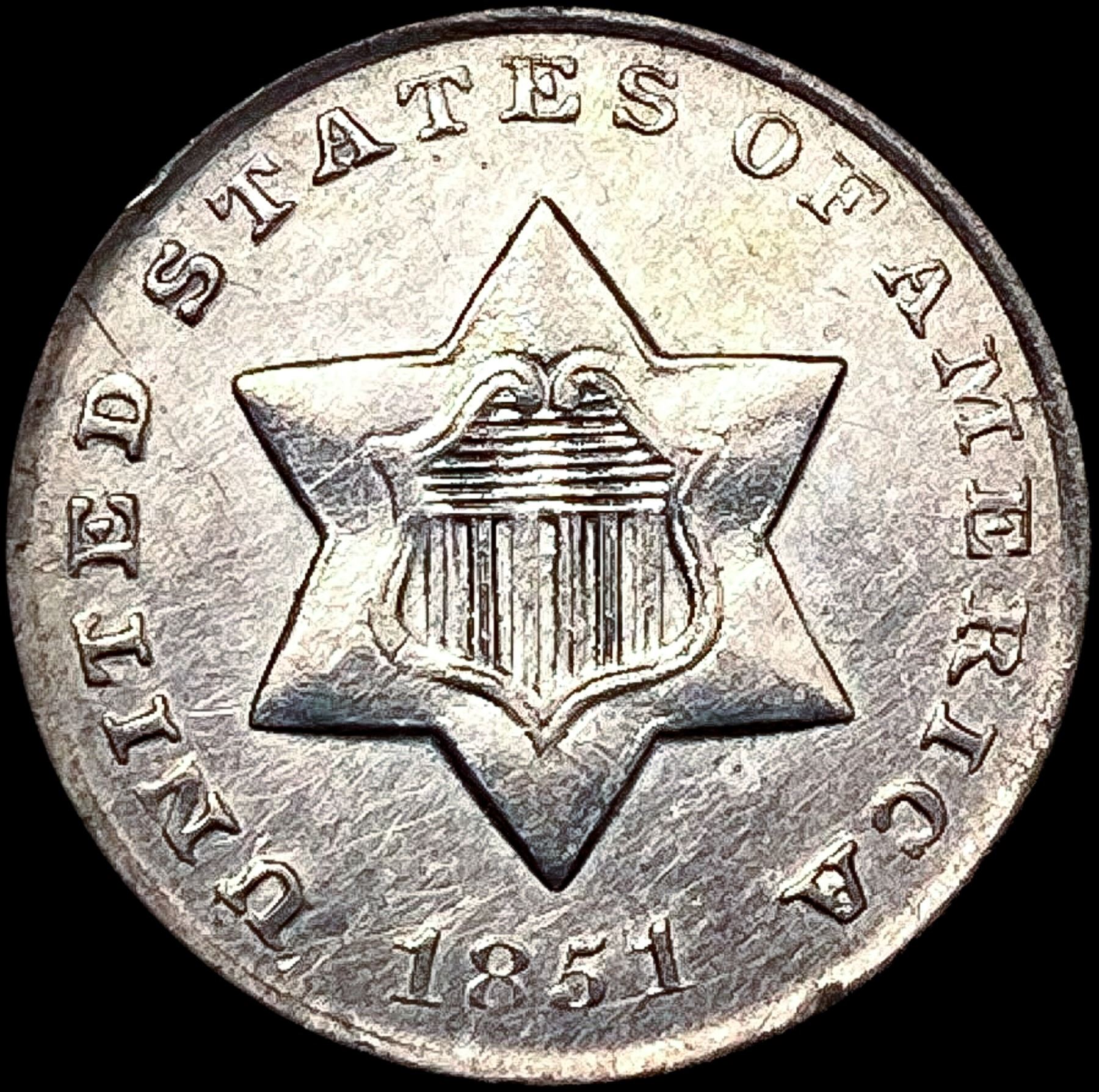 1851-O Silver Three Cent CLOSELY UNCIRCULATED