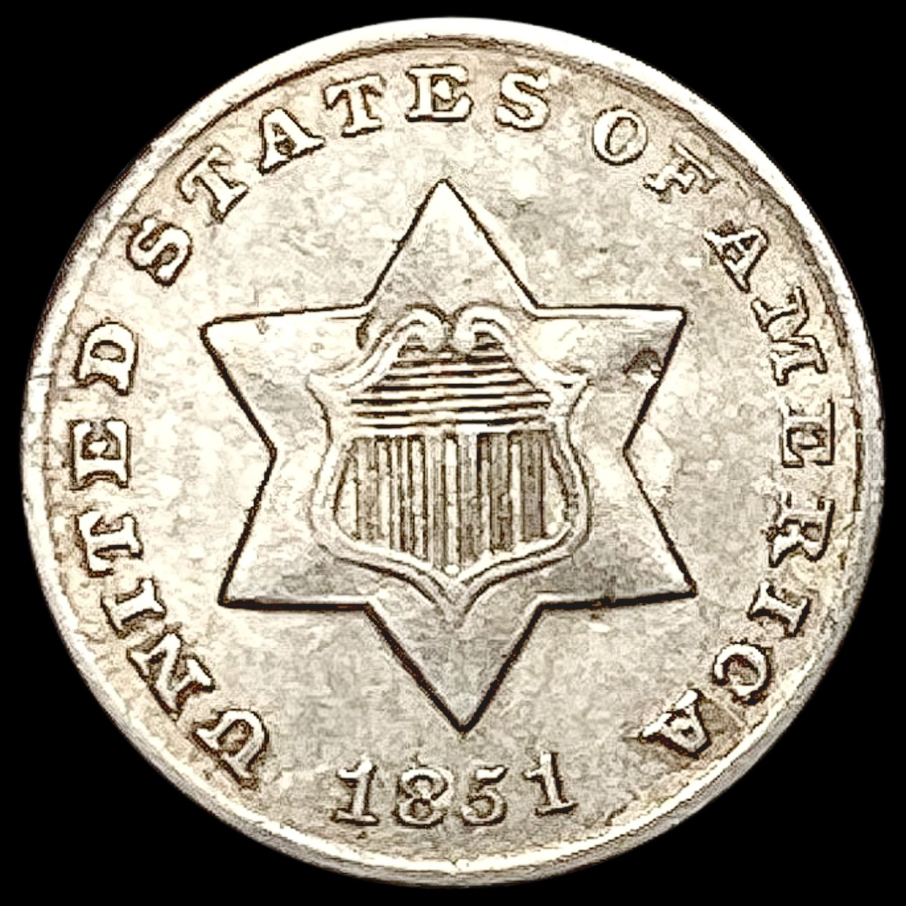 1851-O Silver Three Cent CLOSELY UNCIRCULATED