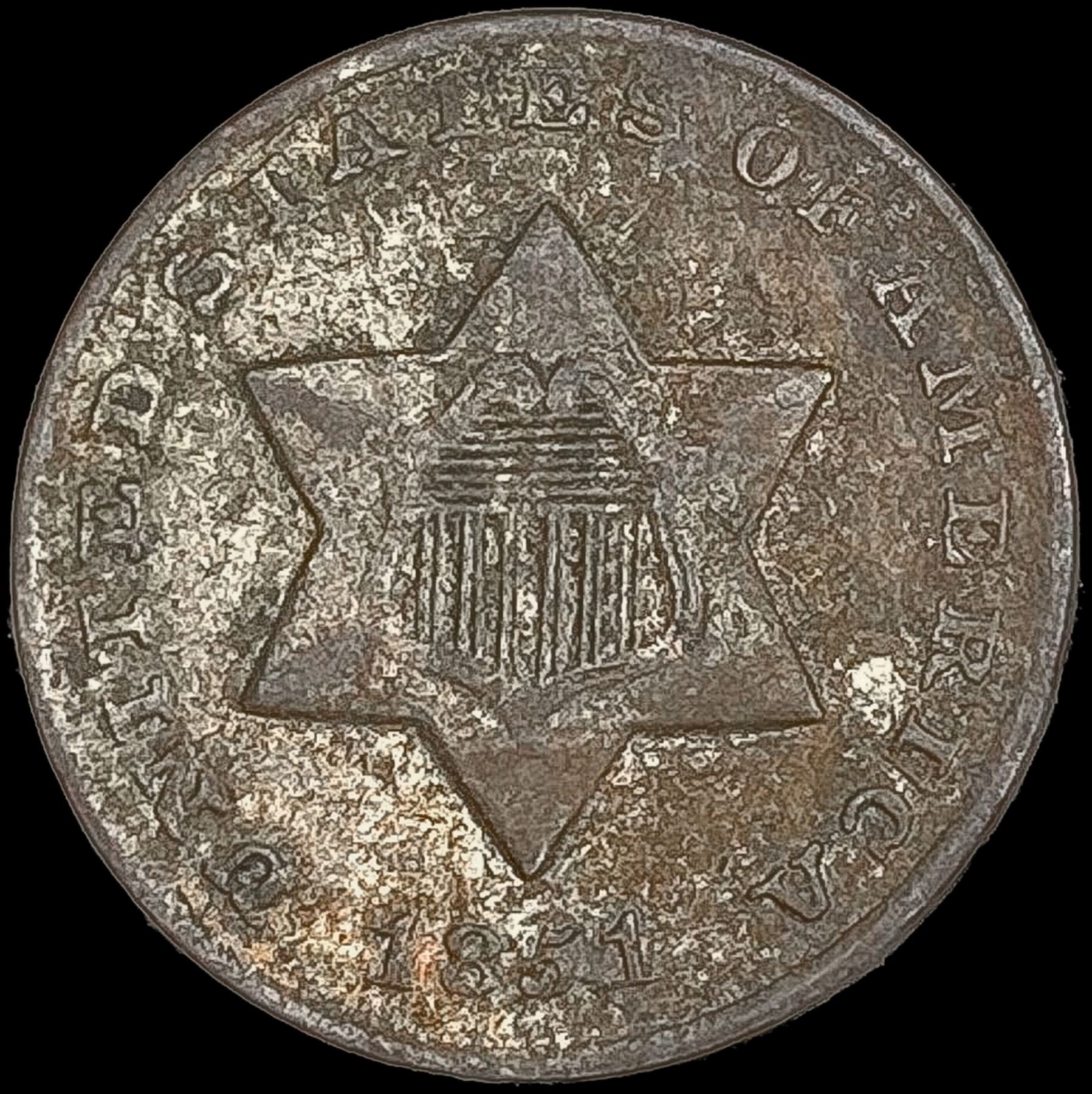 1851-O Silver Three Cent LIGHTLY CIRCULATED