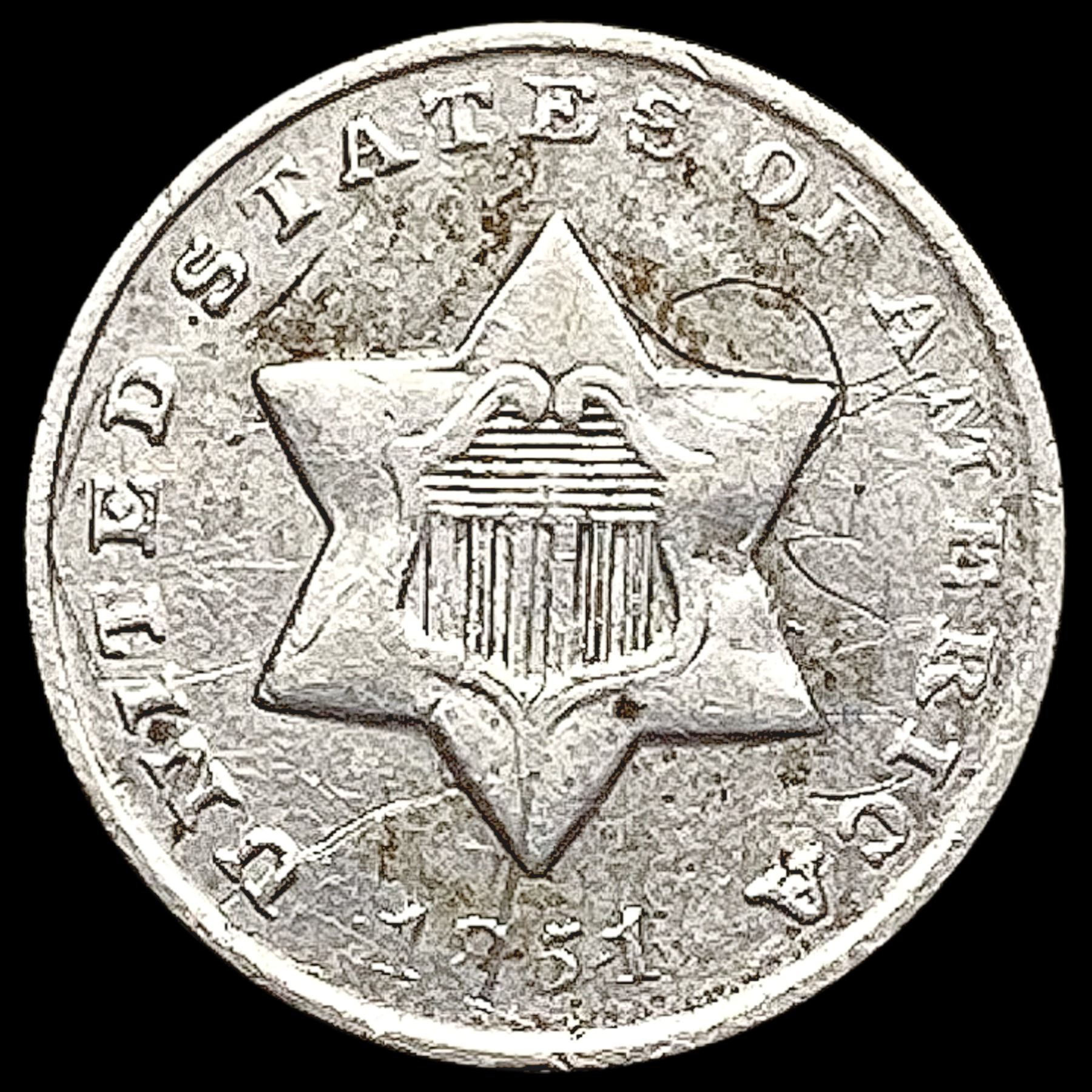 1851-O Silver Three Cent LIGHTLY CIRCULATED
