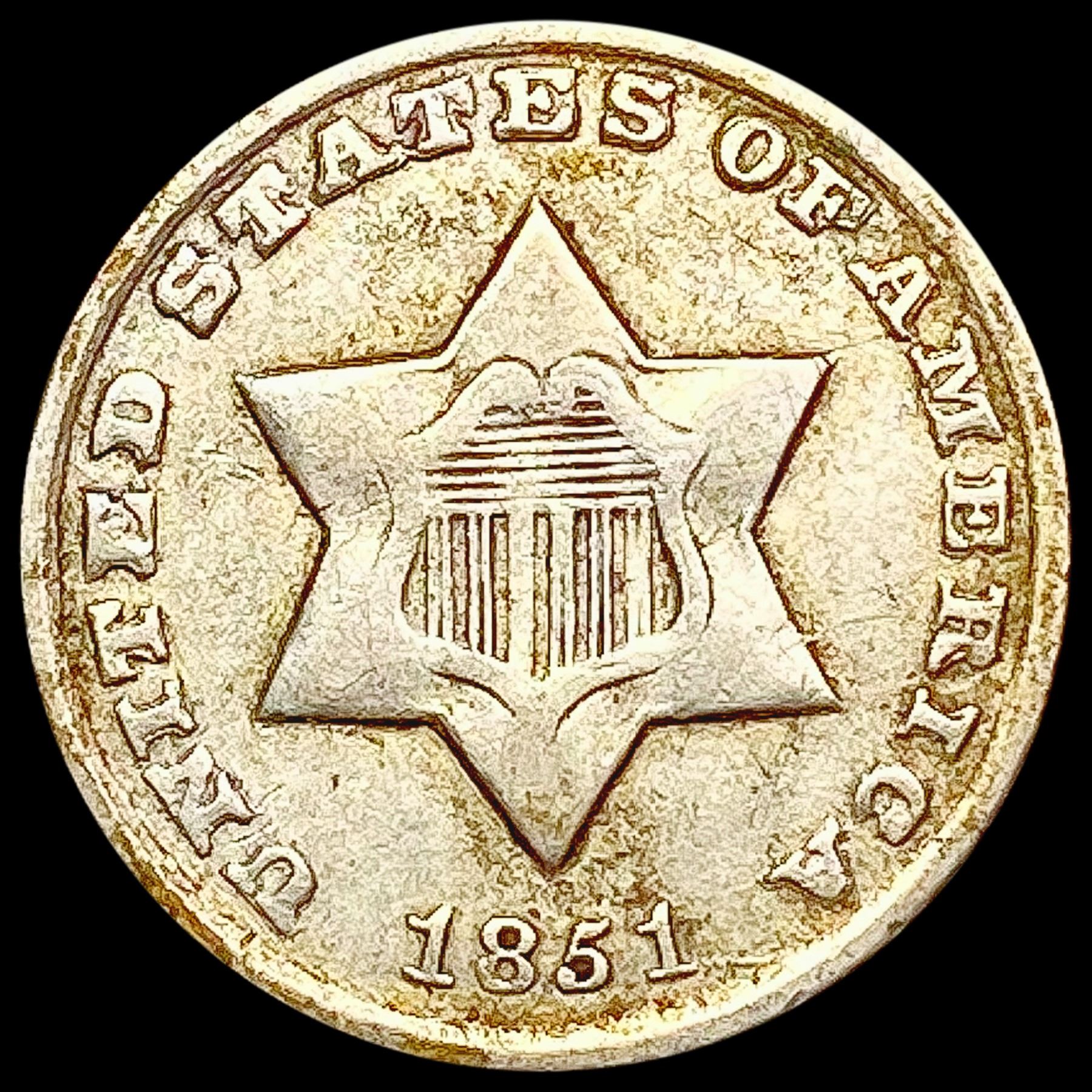 1851-O Silver Three Cent NEARLY UNCIRCULATED