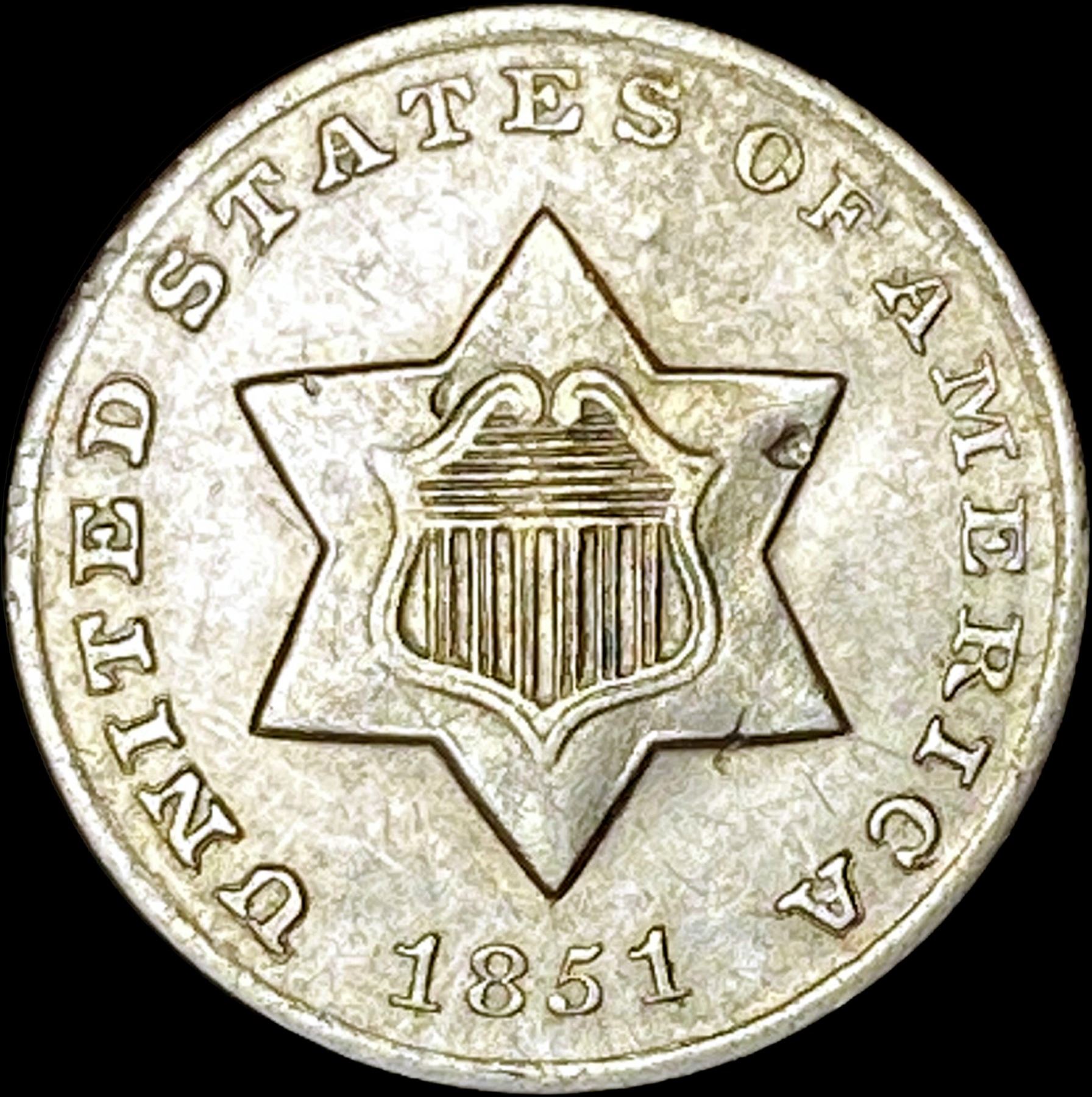 1851-O Silver Three-Cent Piece CLOSE UNC