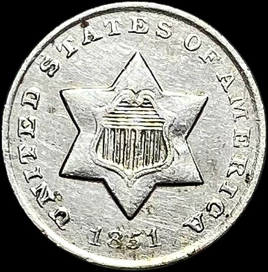 1851-O Silver Three-Cent Piece CLOSELY UNCIRCULATED