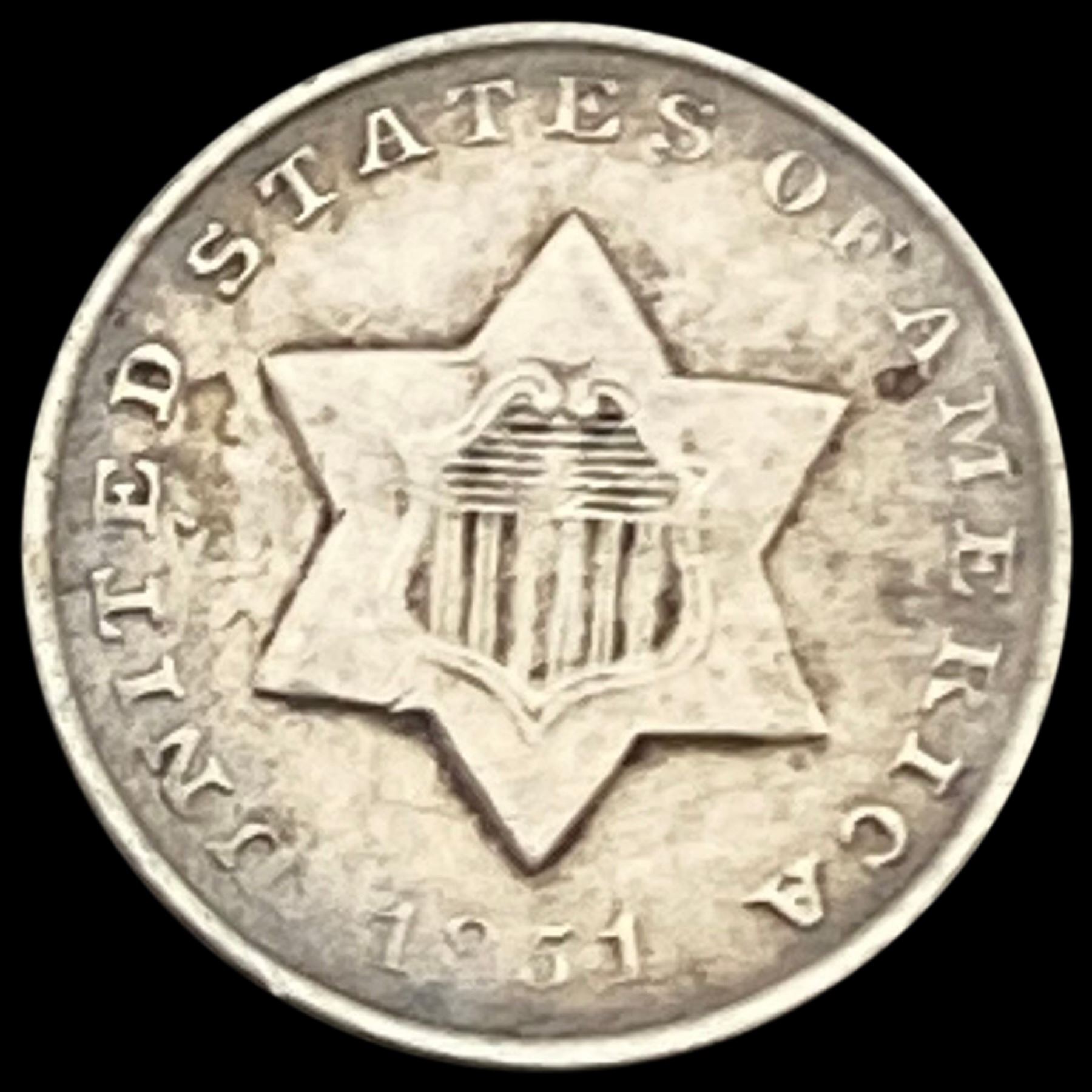1851-O Silver Three-Cent Piece NEARLY UNCIRCULATED