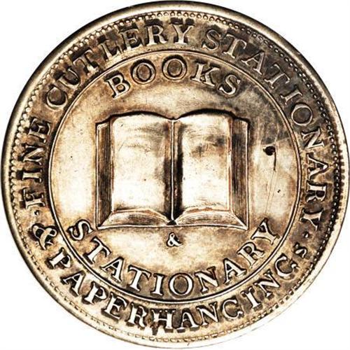 <B>(1851) Obverse Die of Miller-6a, R.C. Barcley, Reverse ?.</B></I> Miller Va-6. Silver-plated copper, 28 mm, with the obverse die of an R.C. Barcley, Norfolk, Va., token. The reverse die is not a Barcley piece but something totally different. We do not know what to call this, but it appears that it might be a brockage of an unknown merchant token. Further research will be the project of this token's new owner. <BR><BR><b>Shipping:</b> Coins & Currency (<a target="_blank" href="http://www.heritageauctions.com/common/shipping.php">view shipping information</a>)