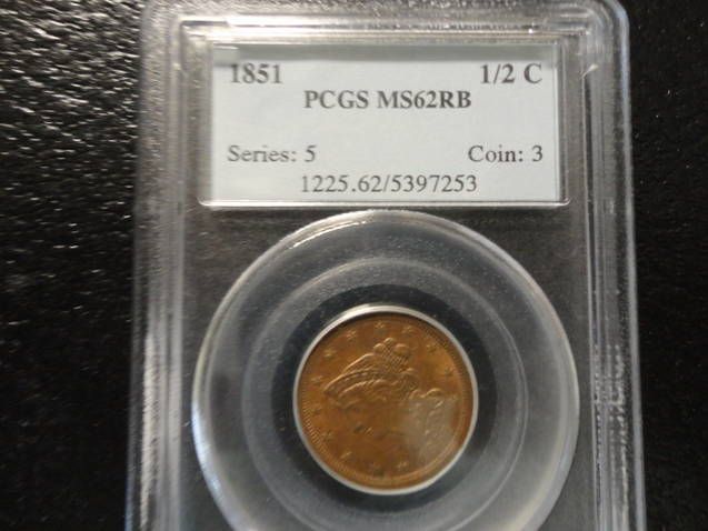 1851 PCGS MS-62 BRAIDED HAIR HALF CENT