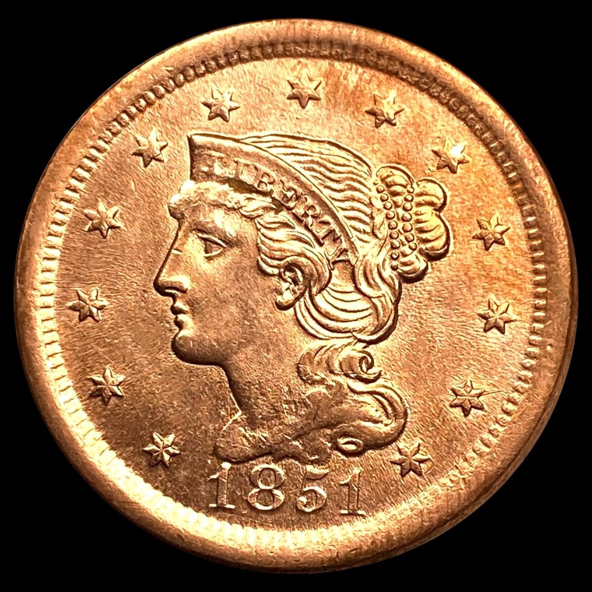 1851 RD Braided Hair Large Cent CLOSELY UNC