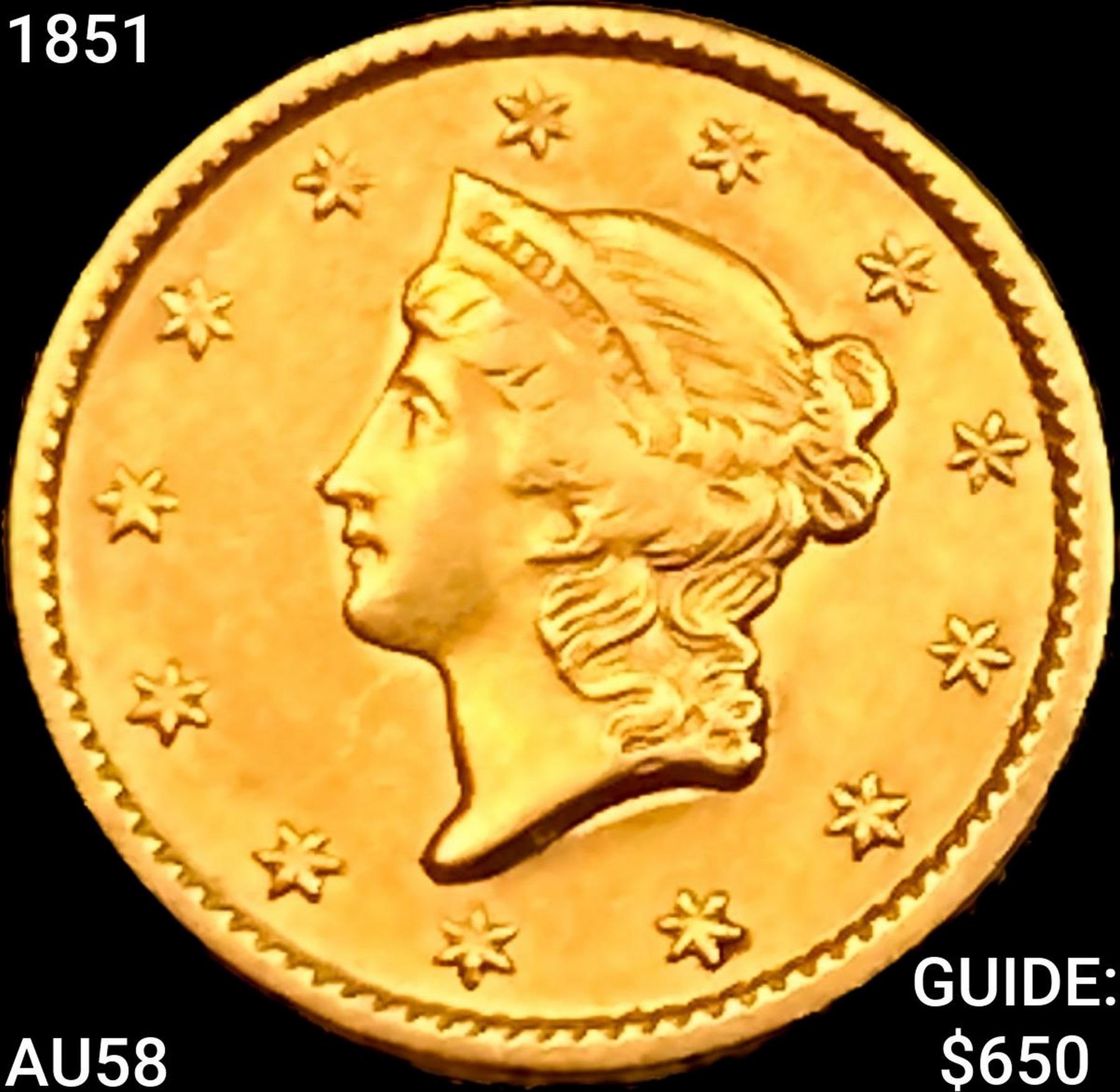 1851 Rare Gold Dollar CHOICE AU